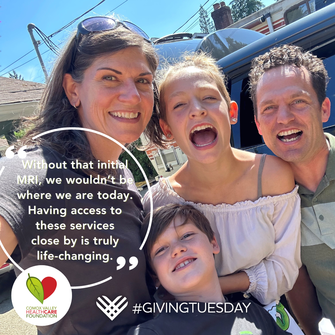 Look at the joy on these faces! Mindy, Brian and their two children are a Comox Valley family who understand how special it is to spend time together and to live in a community with good access to specialty healthcare services. With gratitude for the great care Mindy has received locally and with hope to inspire giving, the couple has given us permission to share some of their story.